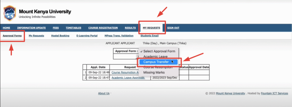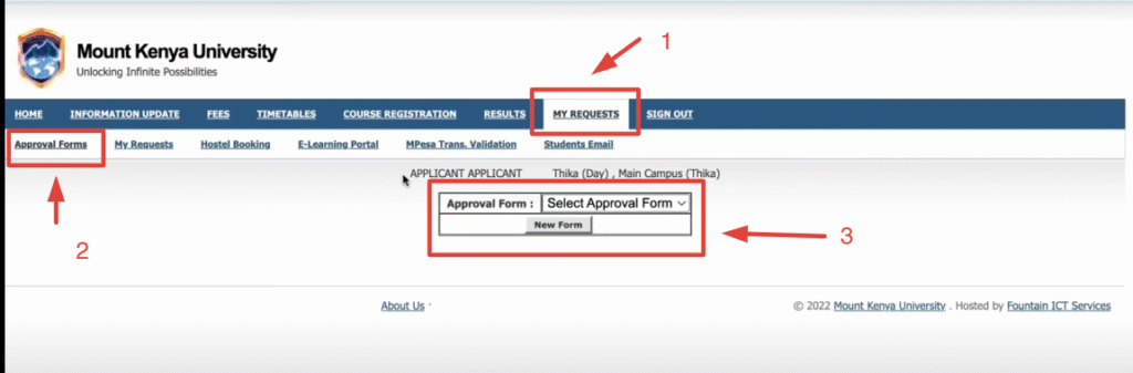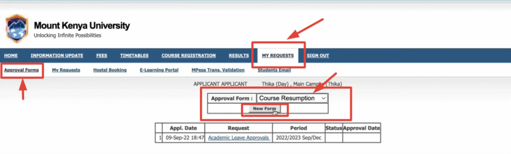 The Approval Forms feature in the Mount Kenya University (MKU) Student Portal allows students to request and track various academic and administrative approvals online. This saves time and avoids unnecessary visits to campus offices.