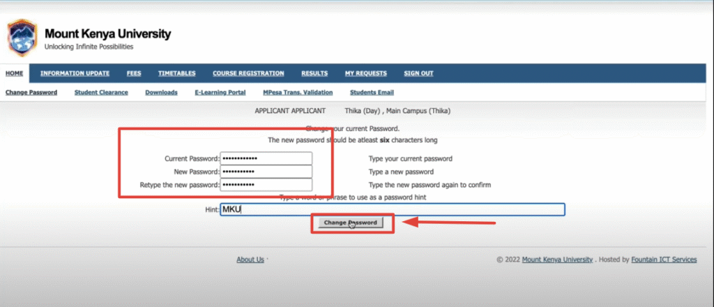 Every Mount Kenya University student needs secure access to the online portal. Since the portal holds personal and academic details like results, course registration, and fee statements, it’s important to keep your login safe. One of the best ways to do that is by changing your password regularly. Here’s a simple step-by-step guide on how to change your password in the MKU Student Portal.