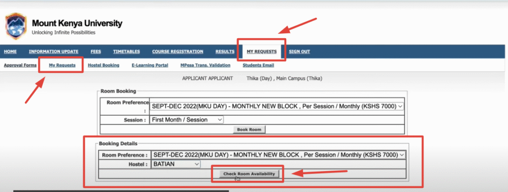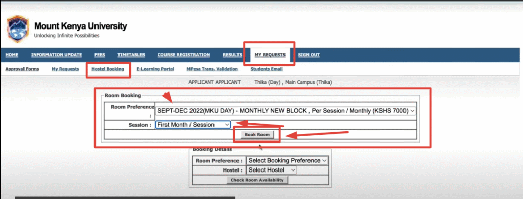 Students can book hostels directly through the MKU Student Portal. The process is simple and ensures you secure accommodation before reporting.