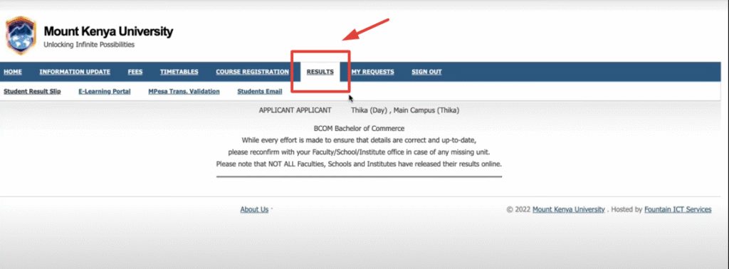 Mount Kenya University provides an easy way for students to access their academic results directly through the Student Portal. Here’s how you can check and manage your results:
